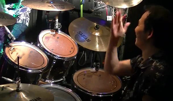 叩きながらのシャウト、その間仁さんは客席から見える様にしゃがむと云う配慮。