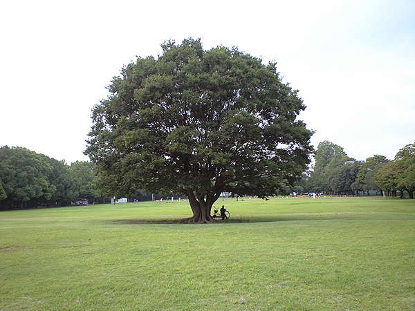 この~木なんの木~な感じの大木と芝生が広々。