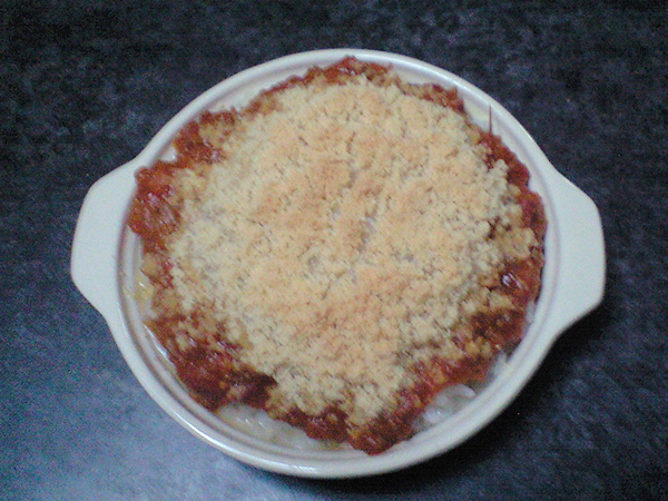煮込んだトマトをミートソースにして、冷凍し切れなかった分をドリアで消費。