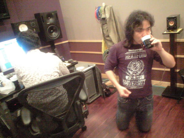3曲入りミニCDなので、初日にドラム全・ボーカル(2曲)を録音し、2回目の今回はギター・ボーカル(残り)・コーラス録音。