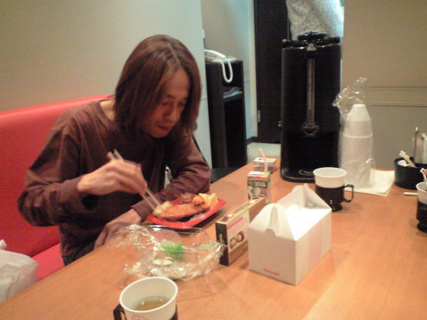 お弁当と差し入れのアイスコーヒー・ジュース+お菓子を買ってスタジオに戻る